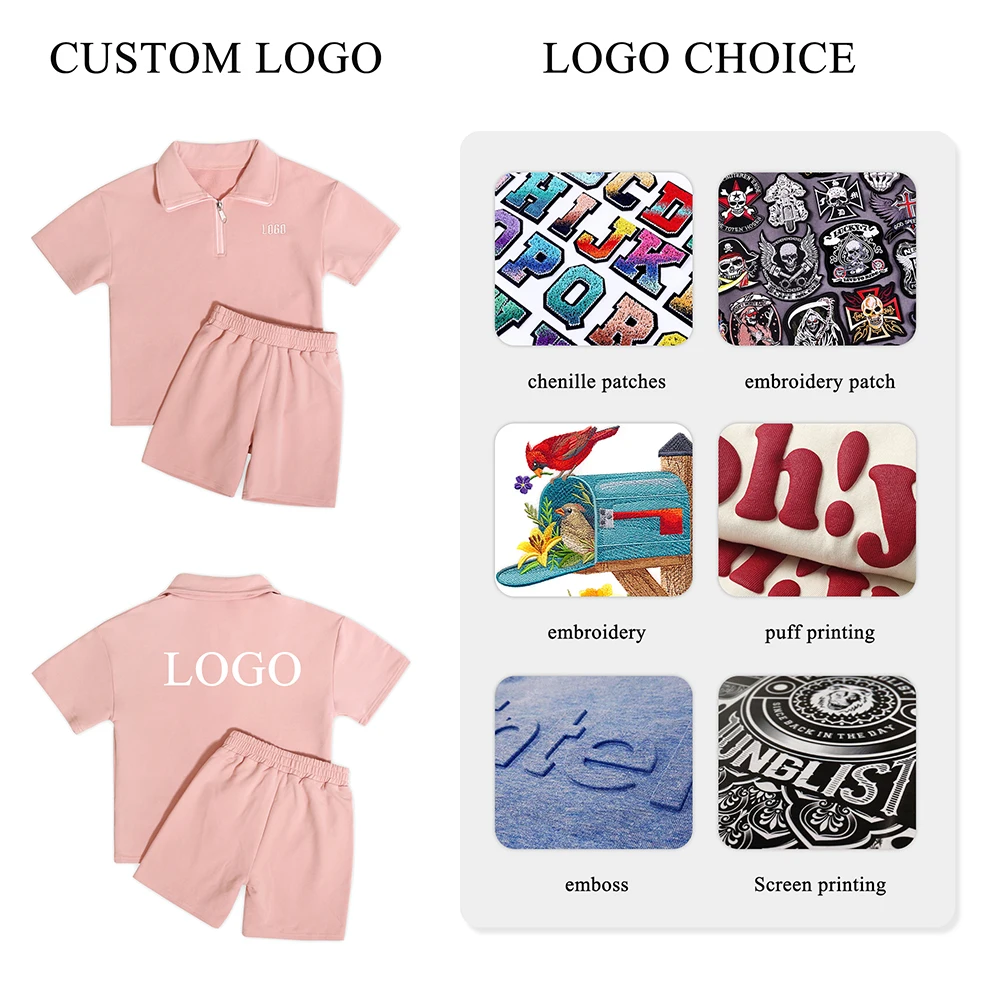 Professional Manufacturer Kids Outfit Short Sleeve Popular Cropped Zip up Hoodie Elastic Waistband Girls Clothing Sets